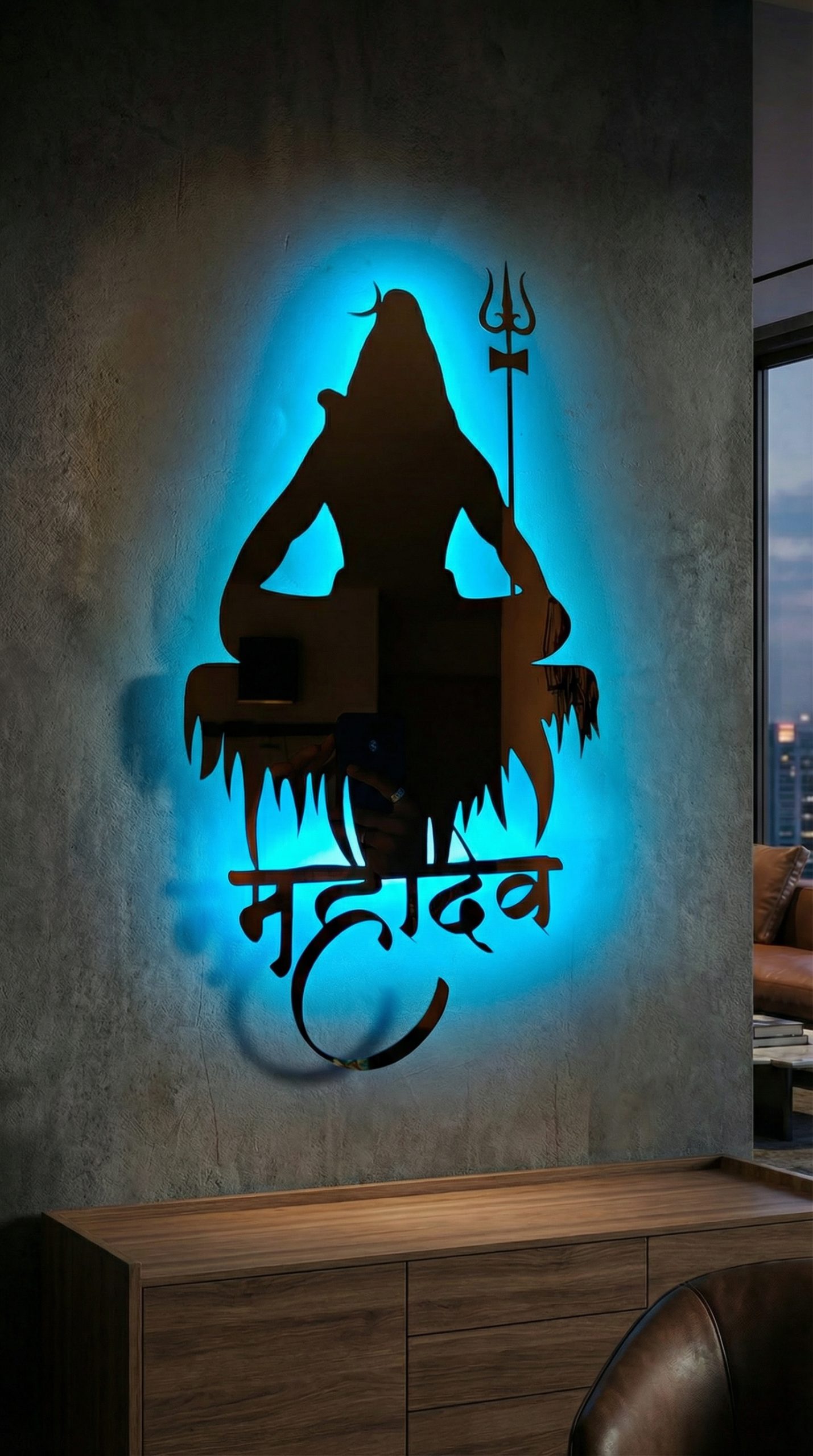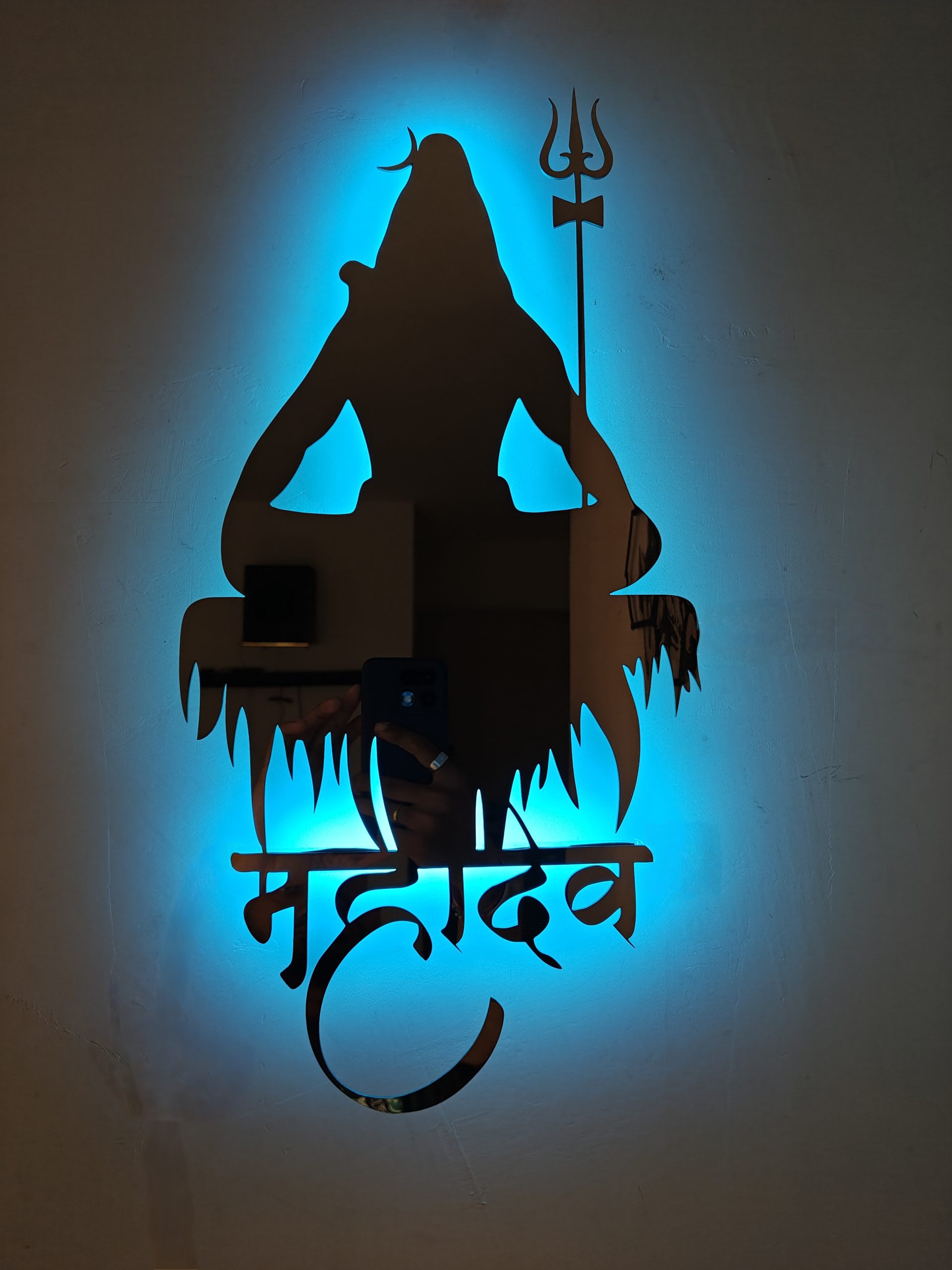 Invoke divine strength, calm, and spiritual balance into your space with the Lord Mahadev (Shiva) Metal Cut-Out with LED Backlight, a premium wall décor piece, This artwork beautifully represents inner peace, meditation, and infinite cosmic energy.